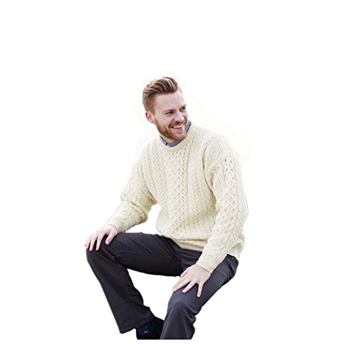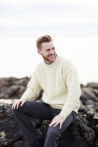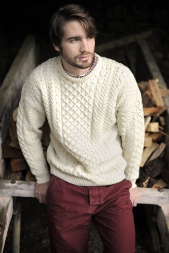 Binding : Apparel Product Description Over the years Ireland has become well known for simple, elegant knits that never date. The Aran is a style of jumper/sweater that takes its name from the Aran Islands off the west coast of Ireland and is sometimes known as a fisherman sweater. This sweaters features all the quintessential Aran details. Traditional cream-coloured threads have been expertly weaved using cable, trellis and blackberry stitches. Made in Ireland this is a perfect gift from the Emerald Isle. 0