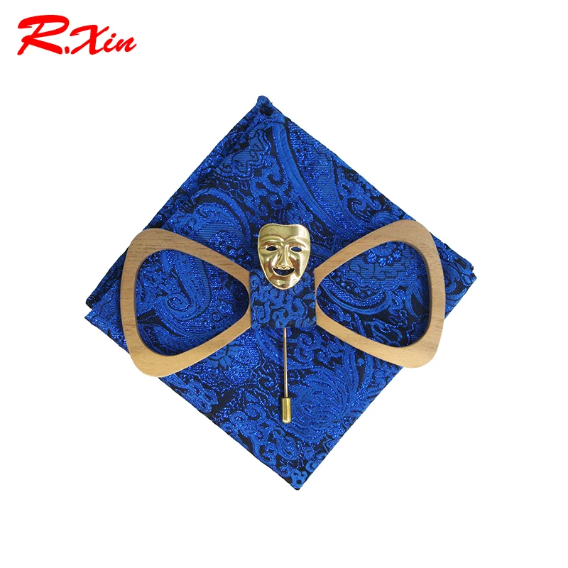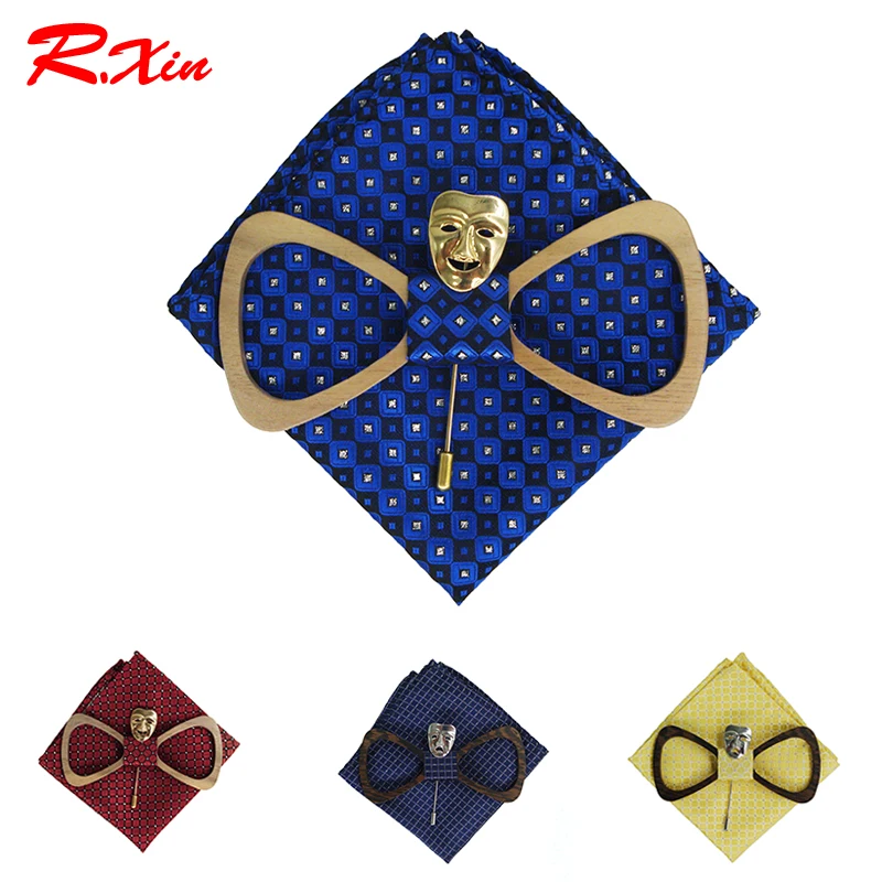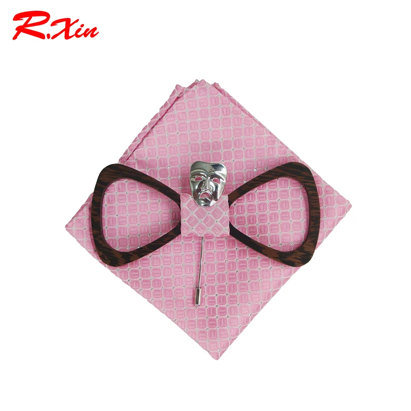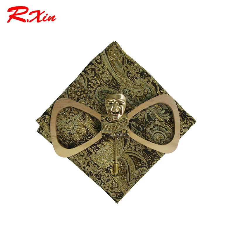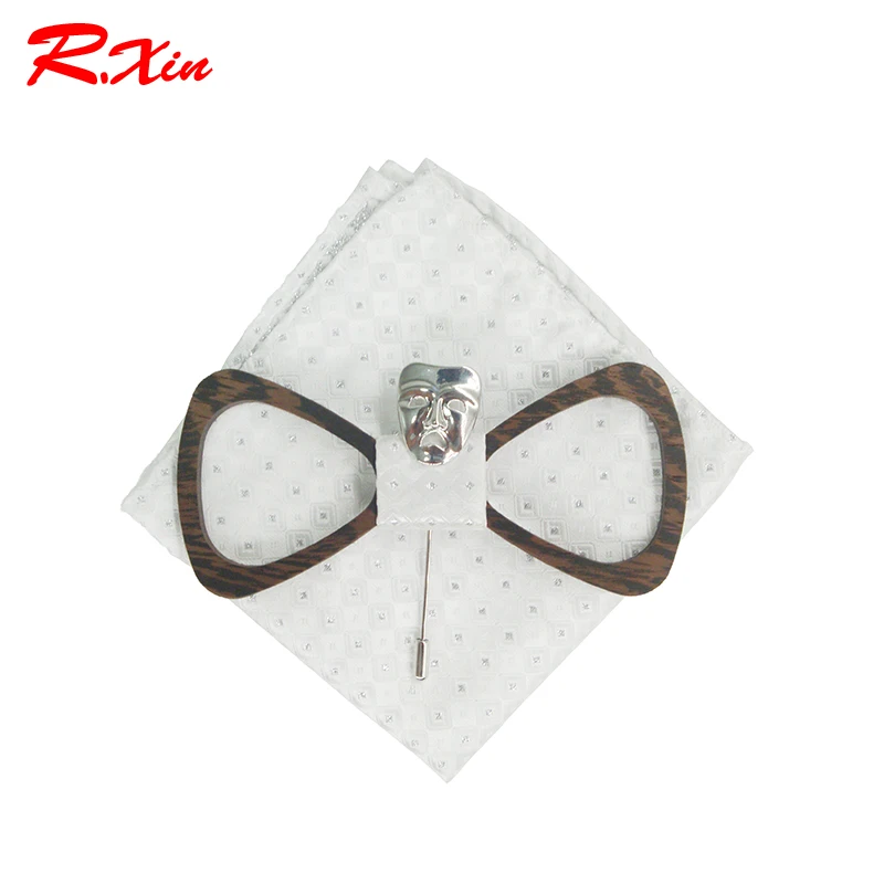 Ties Type: Bow Tie Bow Tie Set: Brooch + Handkerchief + wooden Bow Tie