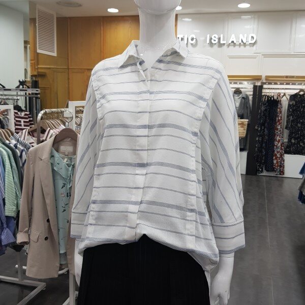 스트라이프 셔츠형 블라우스예요~깔끔하면서 소재감이 시원한 스타일입니다 ~어디에나 매치해서 입으셔도 이뻐요 ~
