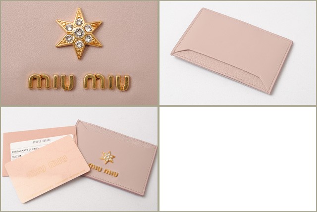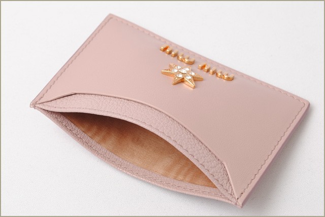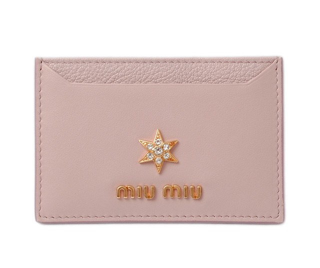 ミュウミュウ カードケース/名刺入れ miumiu 5MC208 MADRAS/マドラス ラインストーン MUGHETTO/ライトピンクプラダの姉妹ブランドとして人気の高いMIUMIU/ミュウミュウ。ラインストーンが散りばめられたスターがアクセントに。山羊革の型押しレザーで、高級感の漂う、しなやかな肌触り。コンパクトサイズで、持ち運びに便利!【 用途 】カードケース、名刺入れ