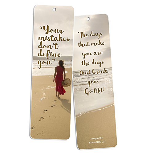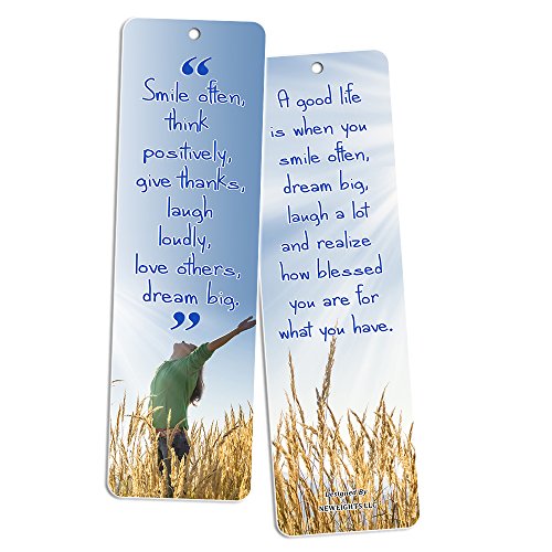 Reversible bookmarks. Front and back of the bookmark displays the quoted inspirational texts that are designed to encourage the user. And great quality as they are made with solid 5.5 oz matte card board paper with double-sided water resistant coating.