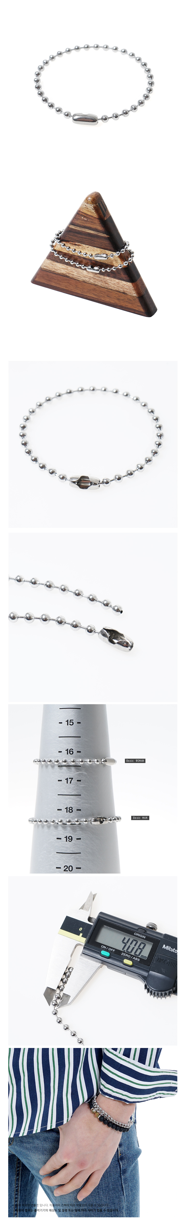 간격이 있는 볼체인을 이용해 제작한 써지컬스틸팔찌입니다.