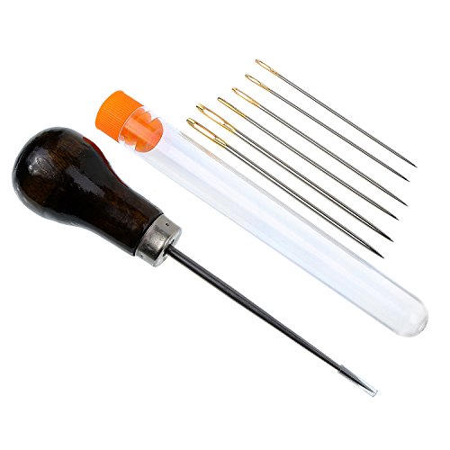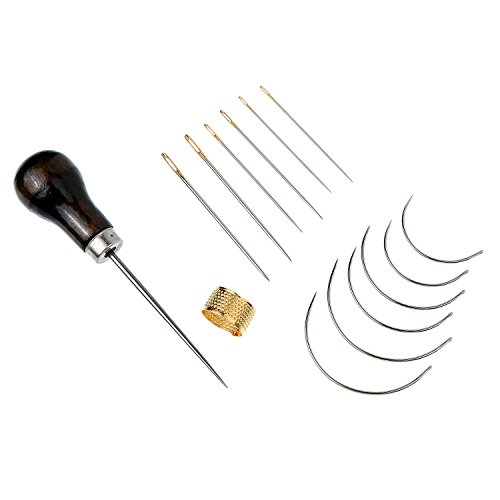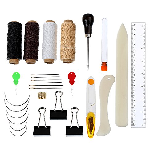 -. Feature : Quantity: 28 pieces totally, include 6 x large-eye needle, 6 x curved needle, 2 x needle-threader, 1 x thread clipper, 1 x thimble ring, 4 x waxed thread, 2 x bone folder paper creaser, 3 x binder clips, 1 x ruler, 1 x needle bottle, 1 x wood handle awl / Material: the needles are made of carbon steel, which is sturdy and can provide a long service, bone folder paper creaser and ruler are made from plastic, lightweight and easy to use / Design of needles: 2 different designs of needles, include large-eye needles and curved needles, each type has 3 different sizes, enough for you to use and meet your different needs in the process of bookbinding / 4 Colors of waxed thread: 4 different colors of waxed threads with 1 mm (150D) in diameter, include beige, white, black and brown, easy to use by hands or tools / Bookbinding tools set: the bookbinding tools set has different tools for your bookbinding, can be applied to handmade or diy books bookbinding while you want to make books or repair old books and other crafts