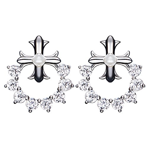 -. Title : MIKAMU  ピアス レディース クロス イヤリング CZダイヤ高品質 100%925純銀製 ファッション アクセサリー ジュエリー 二個セット