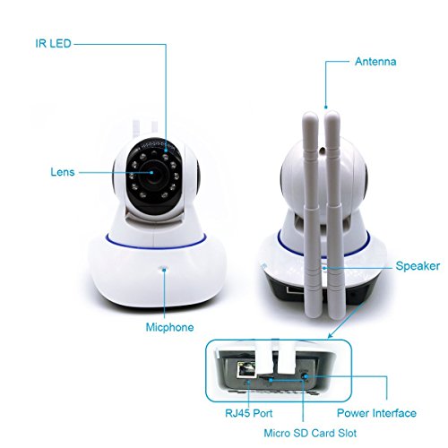 -. Feature : 32FT Night Vision Distance:MEIBEI security camera with 10 infrared lights, night vision up to 10 meters, automatically switch the day and night mode, so that you can see clearly even in the night. / PTZ Function:Tilt up to 90 degree,350 up to 355 degree,no matter where you install it, such as walls, ceilings, tables, etc. it can provide you with a full range of monitoring screen. / Multi-platform Remote Control:A surveillance camera can connect multiple devices, such as mobile phones (support IOS and Android), computers, and multiple devices at the same time online, coupled with two-way voice function, to accompany the elderly and children. / Smart Alarm:Our IP camera has the function of mobile monitoring, once the camera to capture the abnormal movement, it will save the screenshot, and sent to your phone, the camera built-in microphone can make you speak to stop thieves, appease crying children and so on. / 1 Year Warranty:We provide a one-year warranty, to provide you with a full range of services to ensure that you can enjoy 100% satisfaction.