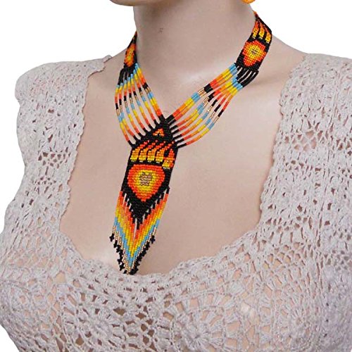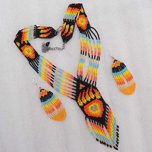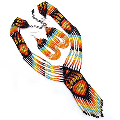 -. Title : Orange Fire Seed Beaded Necklace Earrings Bear Paw S-53-SB-5
