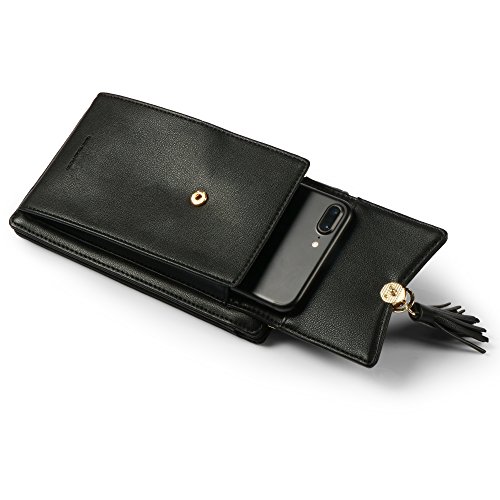 -. Feature : Made of high quality PU leather. A small bag with metal button and adjustable PU leather strap, so it can be used as cross-body bag, messenger bag, shoulder bag, also can be carried as wallet purse or phone purse. / Dimension: 7.08*4.33*1.77 inch/18*11*4.5 cm(L*W*H), weight is about 0.44 lb/200 g. / Cellphone pouch design. Size about 6.49*3.54 inch/16.5*9 cm(L*W). Fit iPhone X/8/7/6/se, Samsung S9/S8,Pixel/Pixel 2, etc. Also you can put your keys, lipsticks, earphones and other small things into the pocket. / Internal structure: 2 photo holders, 6 card slots, 5 cash compartments, 1 zipper pocket for coins. It's large capacity but small size, so you can carry your credit card, ID card, passport, bank card, business card, cash, coins and checkbook in this multipurpose crossbody bag/wallet. / Using occasions. Shopping, dating, traveling, trip, walking and other occasions you don't want to take a bulky bag. With fashion design and high quality workmanship, this cellphone crossbody bag will be a great birthday gift/Christmas Day gift for the one you love.