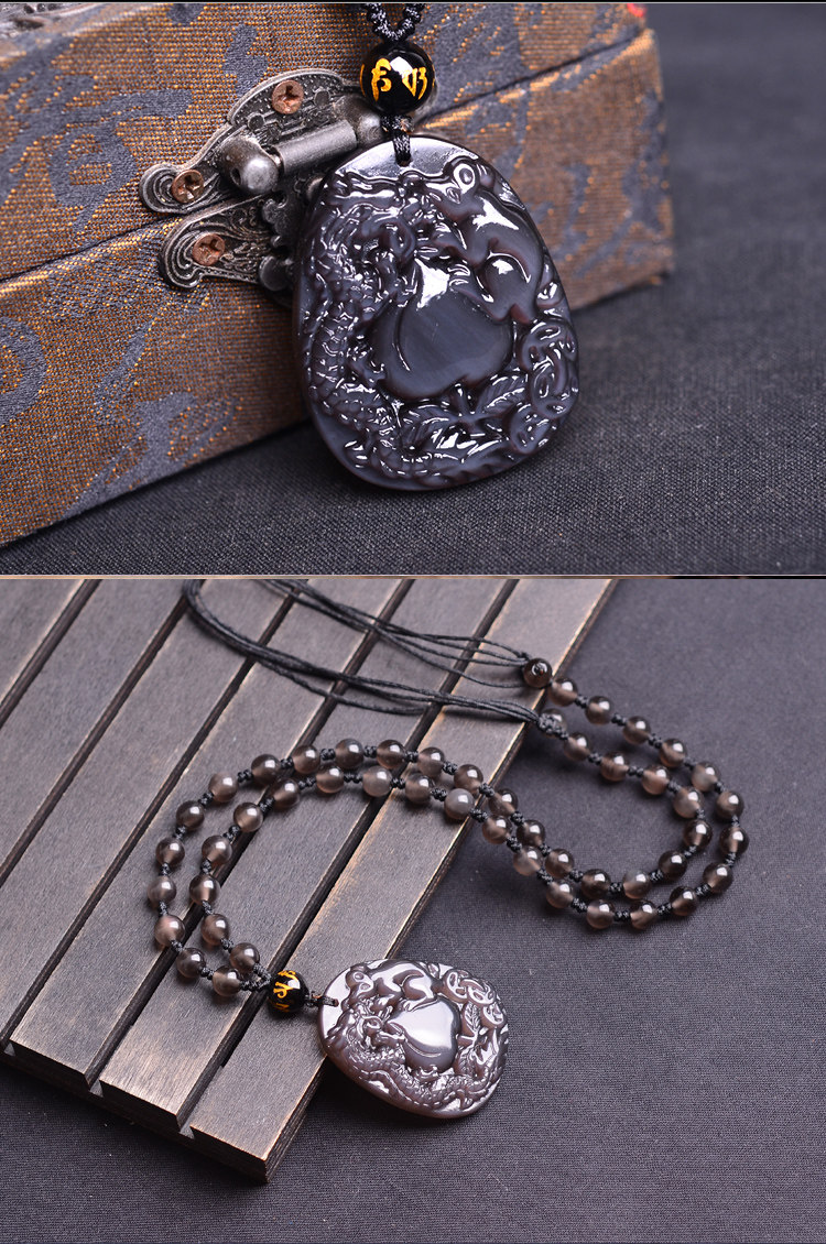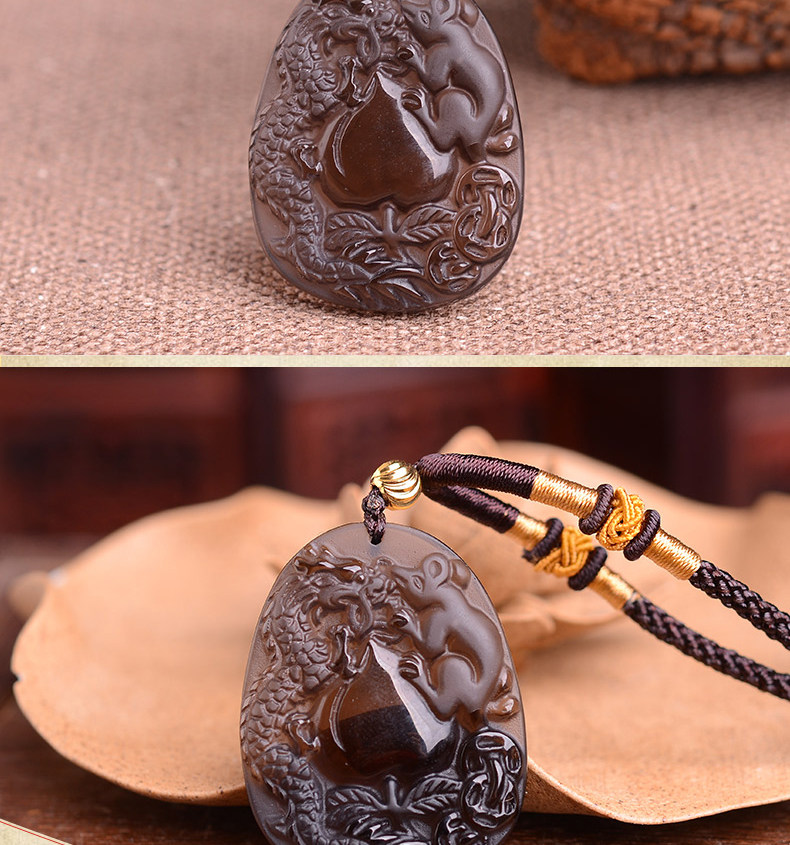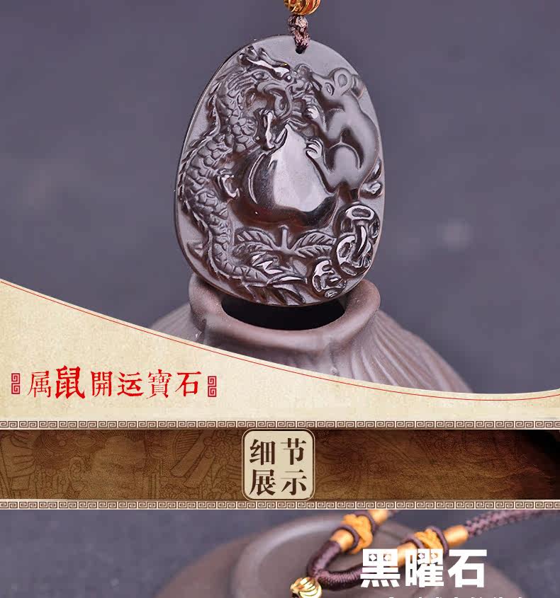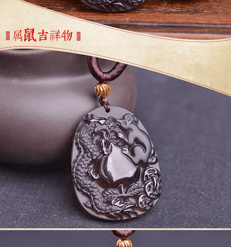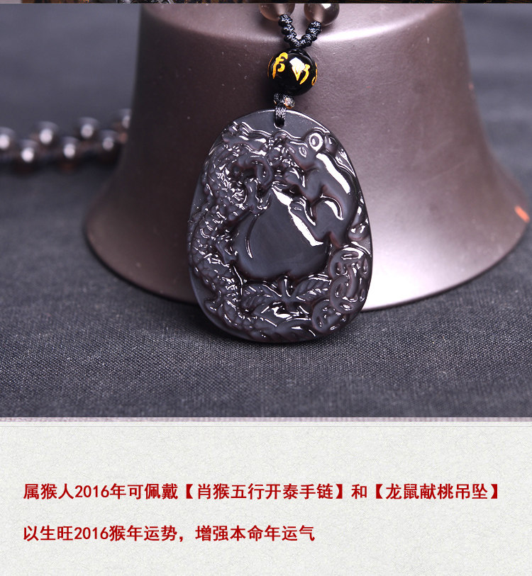 开光正品属猴龙鼠献桃黑曜石吊坠 飞龙玄甲本命年吉祥物