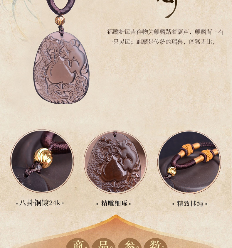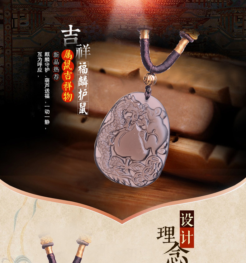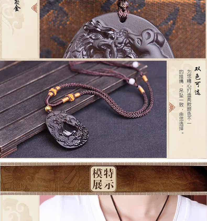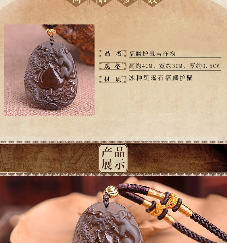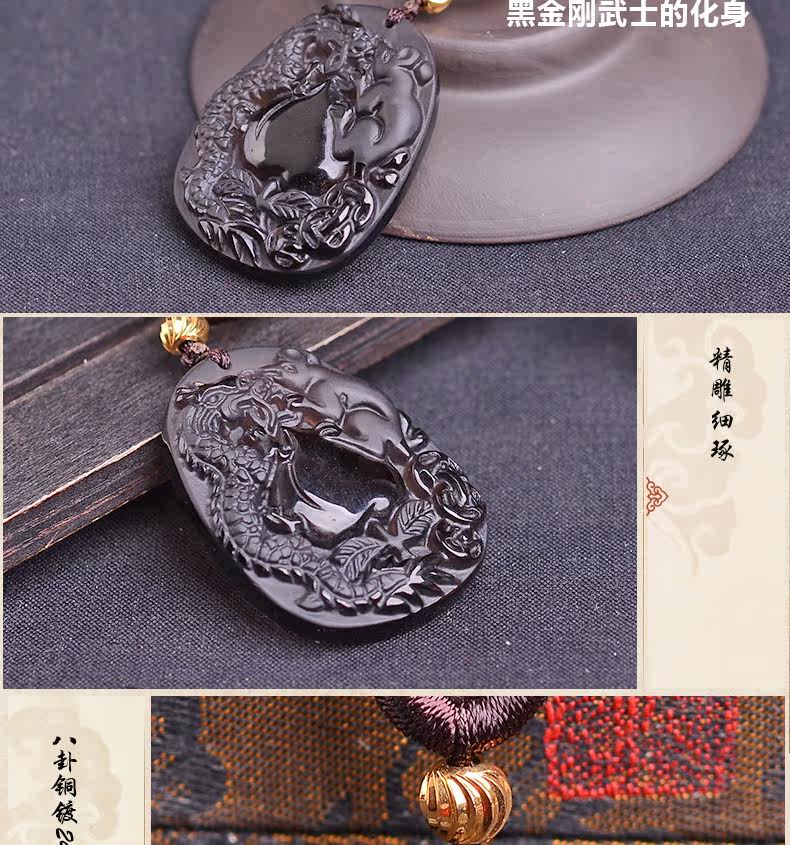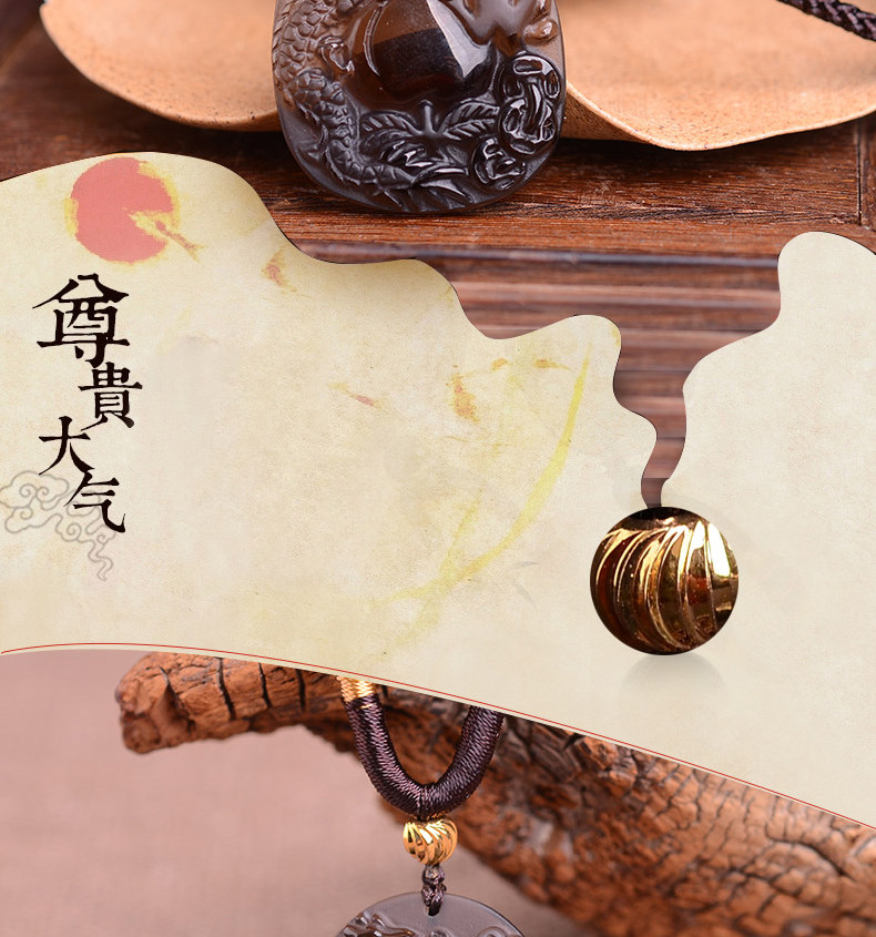 开光正品属猴龙鼠献桃黑曜石吊坠 飞龙玄甲本命年吉祥物