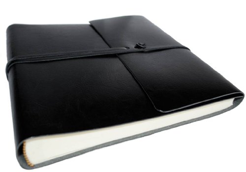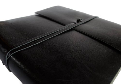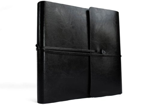 Pachino Medium Jet Black Handmade Recycled Leather Wrap Photo Album, Classic Style Pages (22cm x 22cm x 4cm)