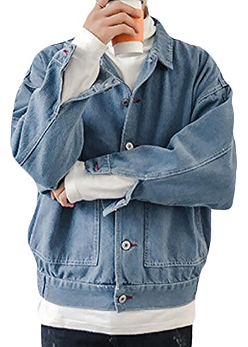 -. Title : Pandapang Mens Loose Faded Vintage Plus Size Trucker Denim Jacket Coat