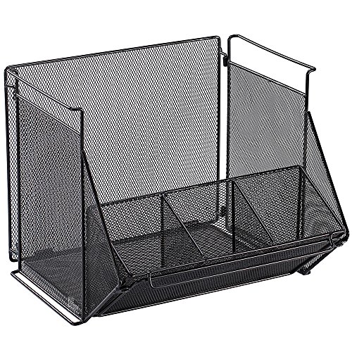 keep important files at the ready with the filing compartment. It can also be used for other items as well like larger notebooks, iPads, books, rulers, etc. Measures 11 1/2"W x 11"H x 12"L