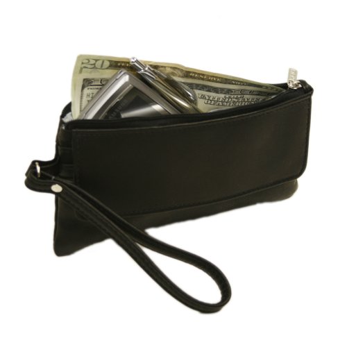 Piel Leather Flap-Over Wristlet, Black, One Size