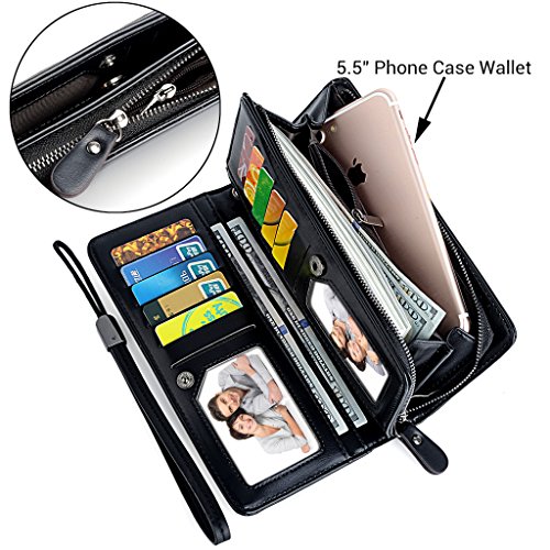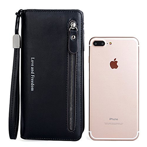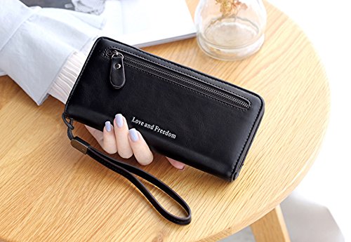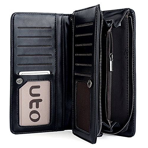 UTO Women PU Leather Wristlet Wallet Large Capacity 5.5" Zipper Phone Case Card Holder Organizer Purse