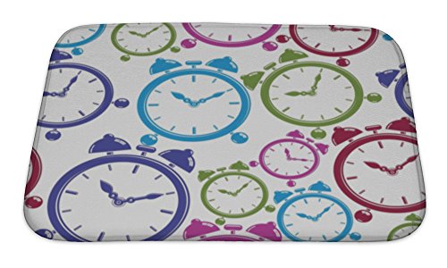 Gear New No Slip Microfiber Memory Foam Pattern with Clocks Bath Rug Mat, 24" X 17"