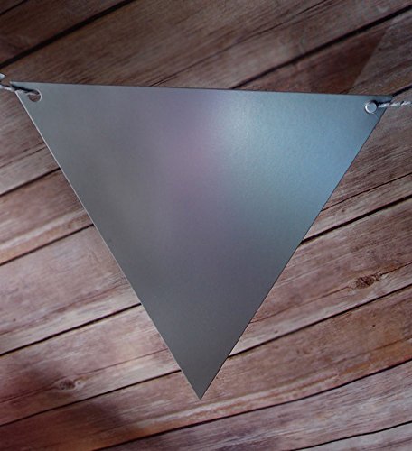 Studio : Quasimoon Publisher : Quasimoon Binding : Kitchen Product Description Flag bunting banners have been popular and trending for parties, weddings, indoor and outdoor decoration for a period of time now. These great decorations are here to stay and will make a great decorating item for any occasion. This is our solid silver triangle pennant banner which includes 12 triangle flags in this banner set. In this set you will receive 12 triangle flag bunting banners which are pre- strung, so all you have to do is take it out of the package and it's ready for hanging. This banner is pre-strung on a matching color twine. Pennants are printed on both sides of each triangle. Product Specifications: Pennant Count: 12 Pennants Pennant Color: Silver Twine Length: 11 Feet Triangle Pennant Dimensions: 7.5"W x 8"L We also offer great variety of matching paper decorations for your event, please view some of our other decorations: round paper lanterns , paper parasols , tissue paper pom poms , paper hand fans . 0