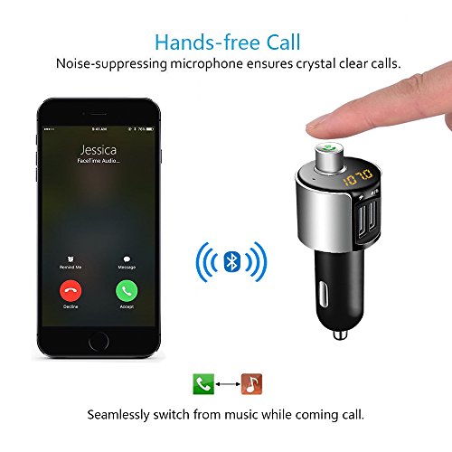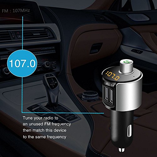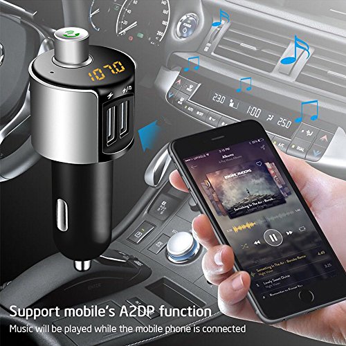 OBSTARO Bluetooth Handsfree Car Charger,FM Transmitter&Music adapter,MP3 player car kit , total 3.4A Dual USB Port Operations: