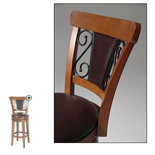 -. Brand : Fashion Bed Group -. Feature : Seat height: 30 in.; Dimensions: 20.25W x 22D x 45.63H in. / Seat width: 20.25 in. / Sturdy metal and wood frame with faux leather swivel seat / Nutmeg finish / Art deco-inspired styling -. Label : Fashion Bed Group -. Manufacturer : Fashion Bed Group -. MPN : C1X070 -. PackageQuantity : 1 -. PartNumber : C1X070 -. ProductGroup : Furniture -. ProductTypeName : HOME_FURNITURE_AND_DECOR -. Publisher : Fashion Bed Group -. Studio : Fashion Bed Group -. Title : Fashion Bed Group Trenton 30 in. Swivel Bar Stool - Nutmeg