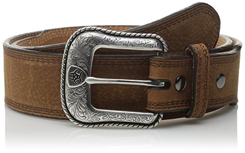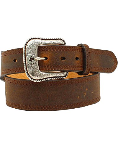 Product DescriptionThis leather Ariat belt by medium and f western products features stitched edges in a brown rowdy leather. Available in sizes 32-46.0