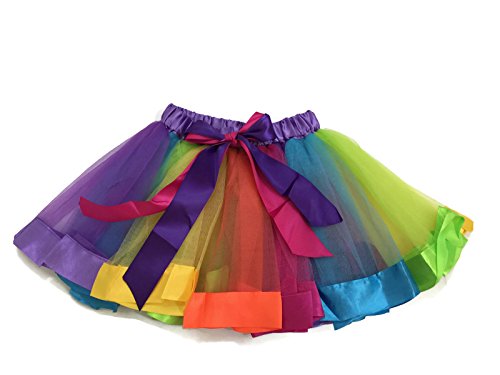 -. Feature : Kids Sized Multi Layered Tutu - 100% Soft Polyester Tulle, Hand Wash Lay Flat to Dry (NO MACHINES/DRYES) / WAIST: Satin Covered Elastic - Colorful Rainbow Tutu. Extremely Fluffy / FIT: Bigger babies, Toddlers & Kids (Age 3-5 Years) / Comes double bow - Pink & Purple Cute Bows - Perfect for Easter Sunday, Birthday, or daily use. / Exclusively By Rush Dance TM