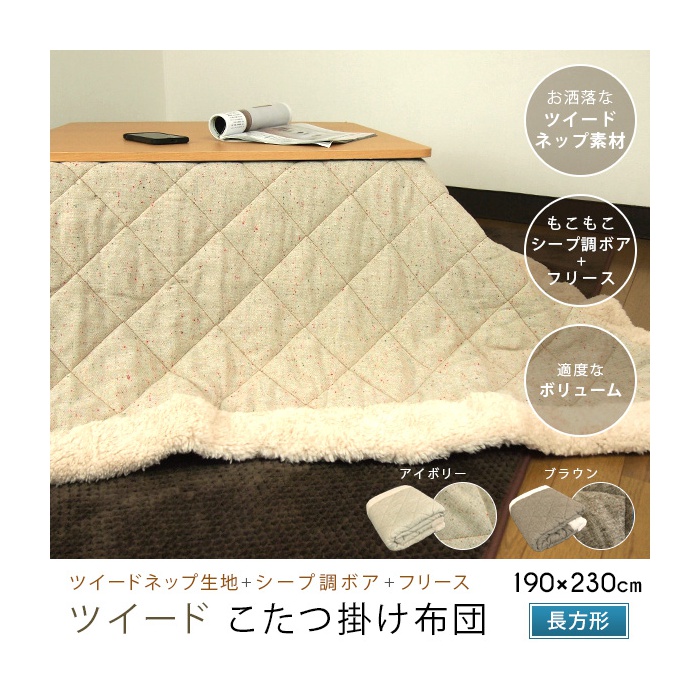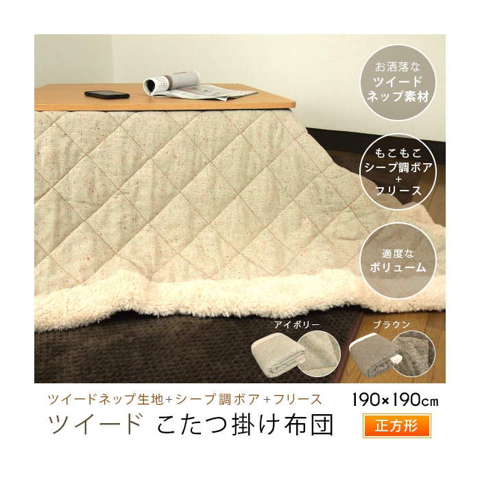 원본상품명: こたつ布? こたつ掛け布? 正方形 190×190cm ネップツイ?ド シ?プ調ボア フリ?ス こたつふとん 炬?布? 掛布? 掛けふとん あったか 北? 薄掛け布? 送料無料