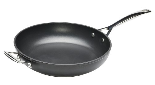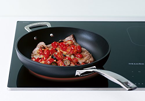Product Description The workhorse of any working kitchen, Le Creuset's exceptional deep skillet puts in an impressive performance for every meal. Forged from hard-anodized aluminum, then impact bonded, this pan is harder than stainless steel and features a healthy, PFOA-free nonstick coating, both inside and out. 10-year warranty. 0