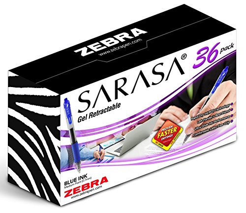 Zebra Sarasa Retractable Gel Ink Pens, Medium Point 0.7mm, Blue Rapid Dry Ink, 36-Count