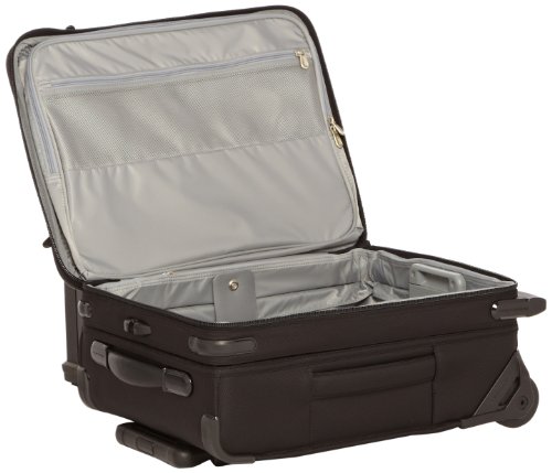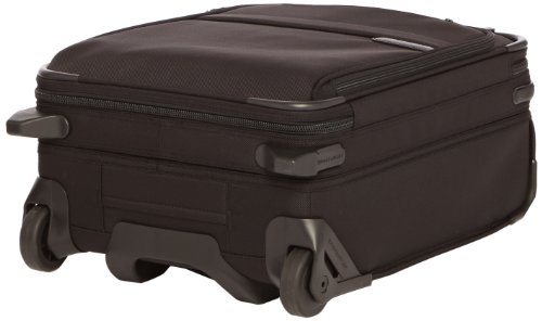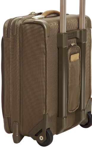 V-groove handle tubes are stronger and guarantee less jamming, interlocking handle system allows bag to stack and stay secure on top of other briggs and riley baseline uprights, comfortable webbing handles with magnetic leather wrap, self-repairing ykk zippers for smooth zipper action with lockable double zipper pulls