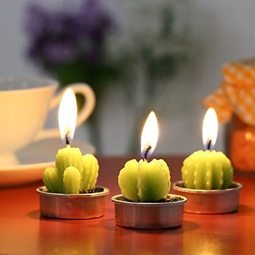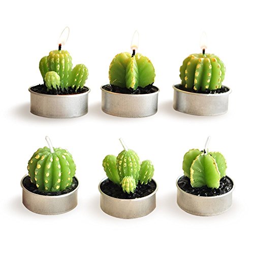 Cactus Candles, Luvu Mini Cute Tealight Candles for Home, Decor, Gift, Birthday, Party 6 Pcs (Cactus)