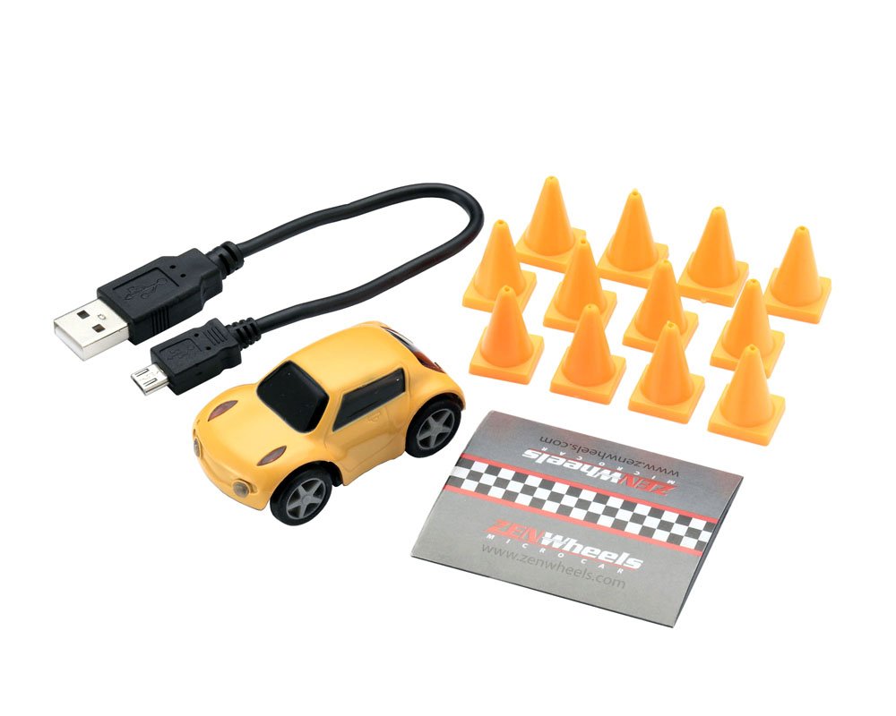 ZenWheels micro car, USB cable for charging, Traffic cone / 10 pieces (for course), timing gate / 1 piece (for auto cross race timing), polycarbonate jewel case, instruction manual (Japanese)