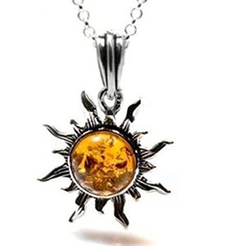 -. Binding : Jewelry -. Brand : Ian and Valeri Co. -. Color : Yellow -. Department : womens -. EAN : 0696736874598 -. Feature : Amber is the lightest and warmest stone that exists, which makes it the most comfortable and attractive gem in jewelry. / Amber is good to wear for any everyday life occasion. / Small pendant diameter of sun 0.66 inches, stone 0.314 inches / Pendant Dimensions Height 0.4 cm Width 1.65 cm Length 2.5 cm Weight 1.5 gr / Chain Dimensions Height 0.1cm Width 0.1 cm Length 46 cm Weight 2.9 gr -. Label : Ian and Valeri Co. -. Manufacturer : Ian and Valeri Co. -. Model : 22047 -. MPN : 22047 -. PackageQuantity : 1 -. PartNumber : 22047 -. ProductGroup : Jewelry -. ProductTypeName : FASHIONNECKLACEBRACELETANKLET -. Publisher : Ian and Valeri Co. -. Studio : Ian and Valeri Co. -. Title : Honey Amber and Sterling Silver Flaming Sun Pendant, 18" -. UPC : 696736874598