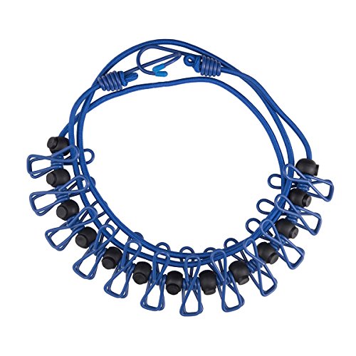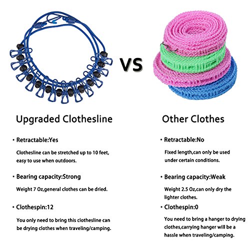 Studio : Xuanda Publisher : Xuanda Binding : Kitchen Product Description Features: 1. The BLACK CLIPS restrain the clothespins from sliding, hence, keep clothes safe from sliding to the center. Clothes stay in position and dry up instantly. They also can be moved smoothly by press and hold the little button on the top of the clips. 2. With 12pcs clothespins for hanging towels, socks, underwear, bathing suits and any other lightweight clothes such as T-shirt. Not for heavy clothes such as coats, jeans etc. 3. Lightweight, portable and very sturdy. Only weighs 7 ounces making it highly portable for traveling and camping, as well as home use. 4. Super easy to install. The cord is expandable/stretchable and the steel hooks allow you attach your line almost anywhere. No training is required, and installation is only a matter of minutes. 5. Stretched up to 10 feet Material: Hooks and Clothespins: Stainless Steel Clothesline: Bungee Cord Black Clips: Hard Plastic Specification: Bungee Cord: 70"(L) x 1/6"(Diameter) Clothespin: 2 1/6"(L) x 2/3"(W) x 1 1/3"(H) Zipper Closed Package: 7 2/5"(L) x 6 1/3"(W) Item Weight: 7oz Shipping Weigt: 8.9oz Package: 1 x Clothesline Warranty: One Year Free Replacement/Full Refund Warranty. 0
