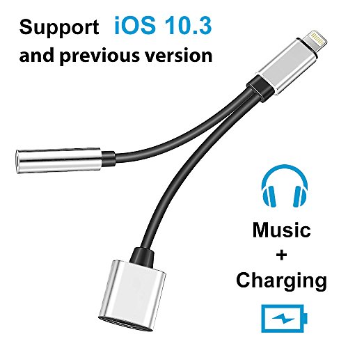 -. Feature : COMPATIBILITY: This adapter is compatible with the new 10.3 & 10.3.1 IOS updates - older versions are not supported. / SUPPORT DUAL FUNCTIONALITY : Charge and Listen to music Simultaneously. This 2 in 1 Lightning Adapter 3.5mm Female Aux Cable allows simultaneous charging and audio output, so you can listen to music and charge your phone at the same time. / LEVERAGES CONVENIENCE OF PLUG AND PLAY : This 2 in 1 Lightning Adapter 3.5mm Female Aux Cable for iPhone 7 / 7 Plus doesn't require additional charging or audio software to use. Just plug your existing headphones / earphones into the jack and enjoy your music. / HIGH QUALITY : New Design Lightning To 3.5mm Audio Adapter Converter. 100% Brand New 8-Pin Lightning to 3.5mm Headphone Jack Adapter and Lightning Charging Port for iPhone 7 / 7 Plus. / HIGH QUALITY AUDIO CHIP : Features premium digital audio conversion chip delivering a premium audio/sound output.