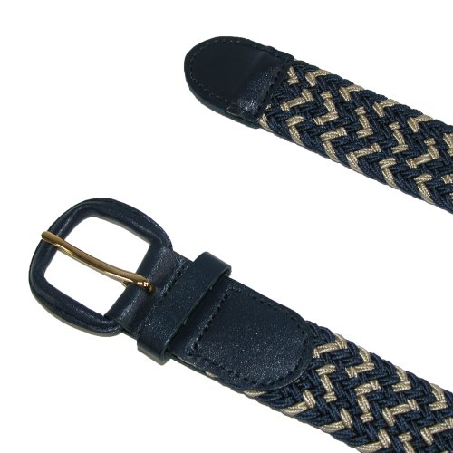 - Feature : Two Tone Elastic Stretch Belt / Elastic / 1.25 inches wide / Matching covered buckle and end tab / Tight weave two tone fabric