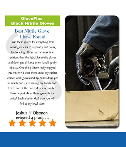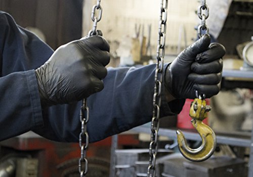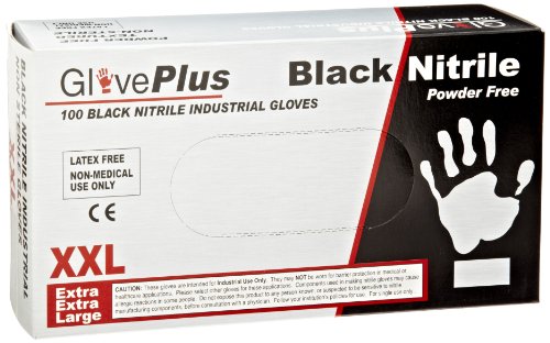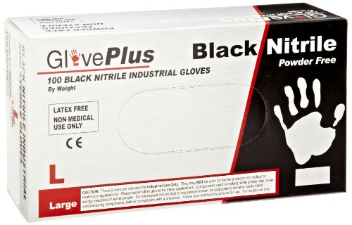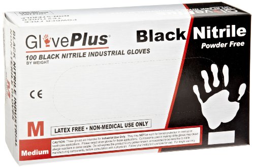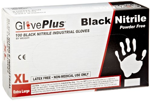 The Ammex GlovePlus industrial grade nitrile, powder-free glove has a palm thickness of 4 mils and a finger thickness of 5 mils and is 9.5" long from the tip of the middle finger to the edge of the beaded cuff, which is 3 mils thick. Nitrile provides better elasticity than vinyl, better puncture resistance than latex or vinyl, better abrasion resistance than chloroprene, and it reduces the likelihood of allergic reaction. This glove is suitable for industrial, non-medical applications, including the food service industry, and complies with Food and Drug Administration (FDA) Regulations for Food Contact (21CFR, 170?199). The glove is textured on the fingertips, fingers, and palm for improved grip compared to gloves with textured fingers, particularly in wet conditions. This powder-free glove leaves no residue, reducing the risk of contamination compared to a powdered glove, making it suitable for use in electronic components, forensic, and laboratory applications. The color of this ambidextrous glove is black.