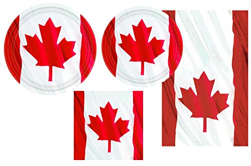 - Patriotic Canadian Flag paper product bundle includes: (10) dinner plates, (12) dessert plates, (20) lunch napkins, (1) table cover