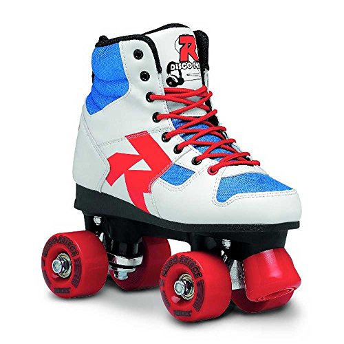 Studio : Roces Publisher : Roces Binding : Misc. Product Description Roces Unisex Disco Palace Fitness Quad Skates Roller Skate Red/White/Mint 550039. The DISCO PALACE roller skate has a vinyl upper and black fabric lining. This Roces quad is designed in Italy with a classic sneaker look. With the bright patriotic and bold colors you will turn heads. Front lace closure and equipped with 58x32 mm cast PU wheels in Red, aluminum trucks and ABEC 7 bearings. This quad skates as good as it looks. Manufacture One Year Warranty. Color: Red/White/Blue. 550039 0