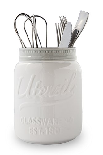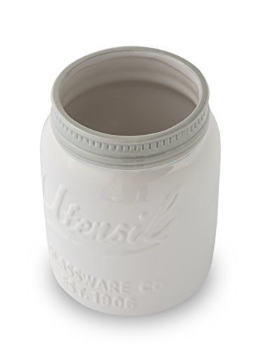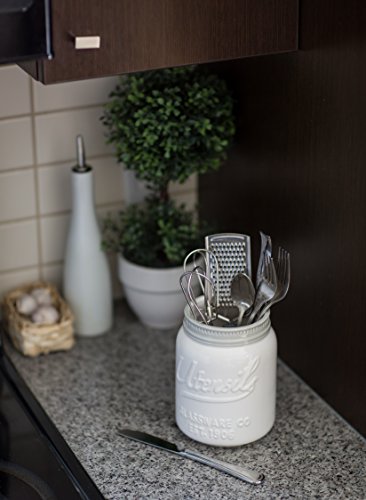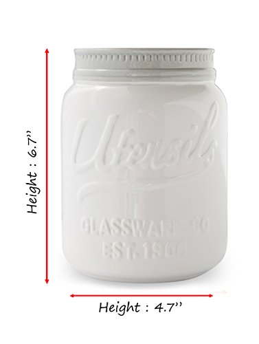 Wide Mouth Mason Jar Utensil Holder by Comfify - Decorative Kitchenware Organizer Crock, Chip Resistant Ceramic - Perfect Cookware Gift - White, Large Size