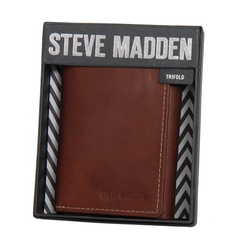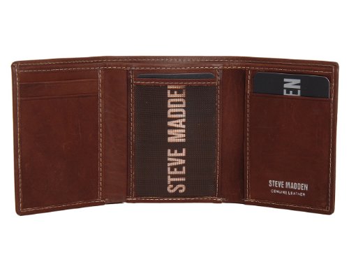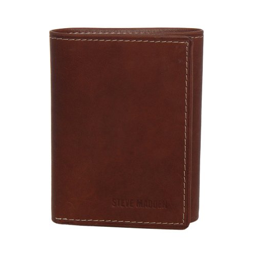Steve Madden Mens Genuine Leather Antique Trifold Wallet (Brown)