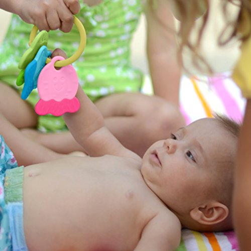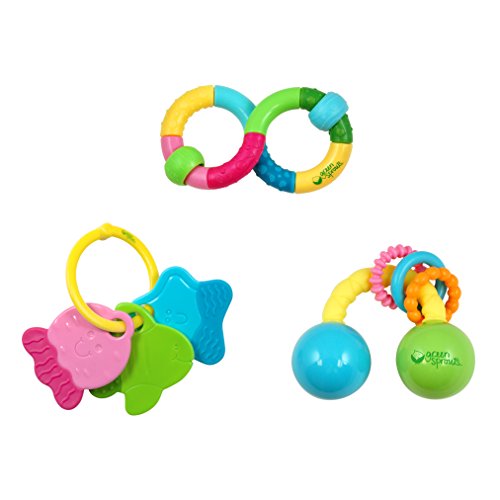 The green sprouts Rattle Set is easy for baby to hold, gum, and chew and each has multiple textures that feel good on teething gums. The rattles make a playful rattle sound and help develop coordination by turning, spinning, and shaking. The Rattle Set stimulates baby's sensory, movement, interactive, cognitive, and creative learning pathways for early, whole development.
