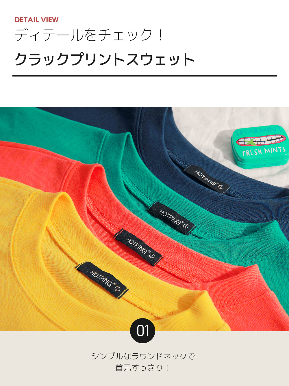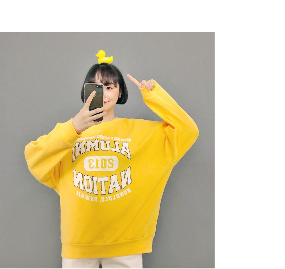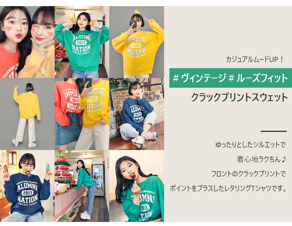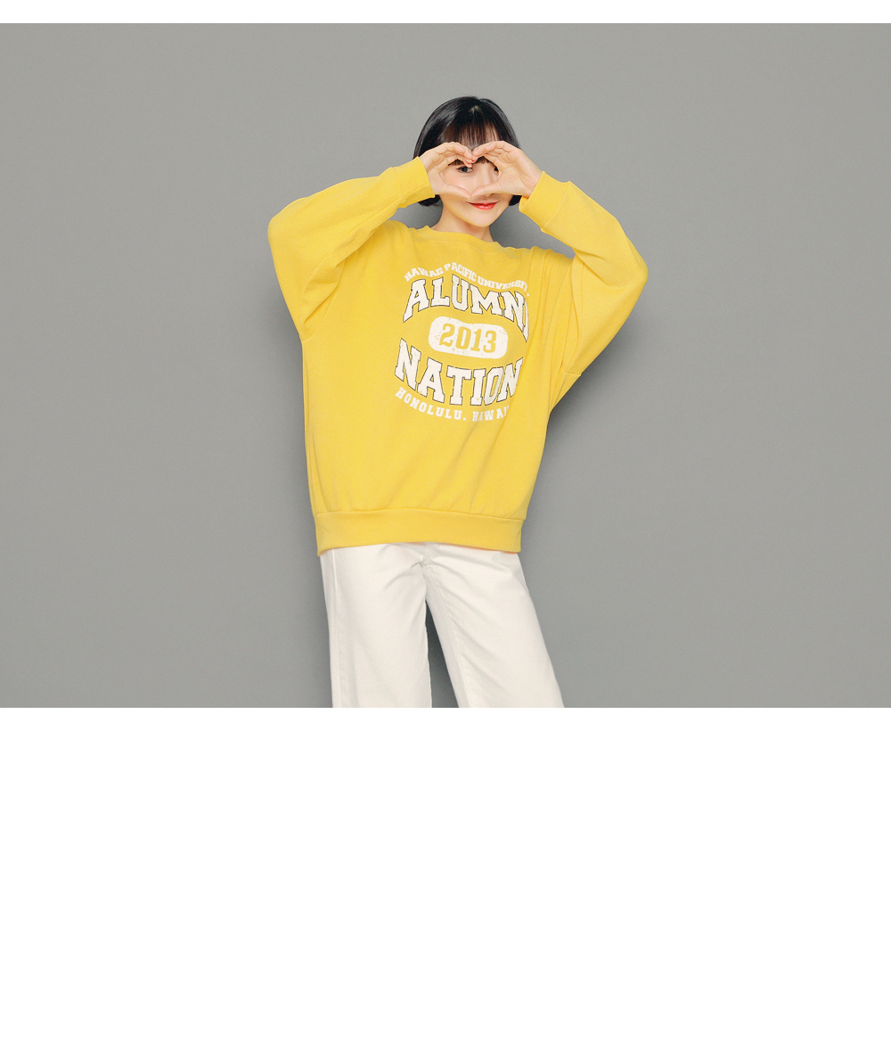 HOTPINGオリジナルの多彩なカラー展開とカジュアルなレタリングデザインでベーシックでクラシカルなプルオーバーです。シンプルなラウンドネックラインでキレイなフェイスラインを演出し、フロントラインのレタリングデザインでユニークな魅力を放ちます。ドロップショルダーとゆとりあるサイズ感のロングスリーブで体型カバーはもちろんラブリーな雰囲気を演出します。活用率の高いベーシックなカラー展開でフェイストーンアップ効果も期待いただけるアイテムです。
