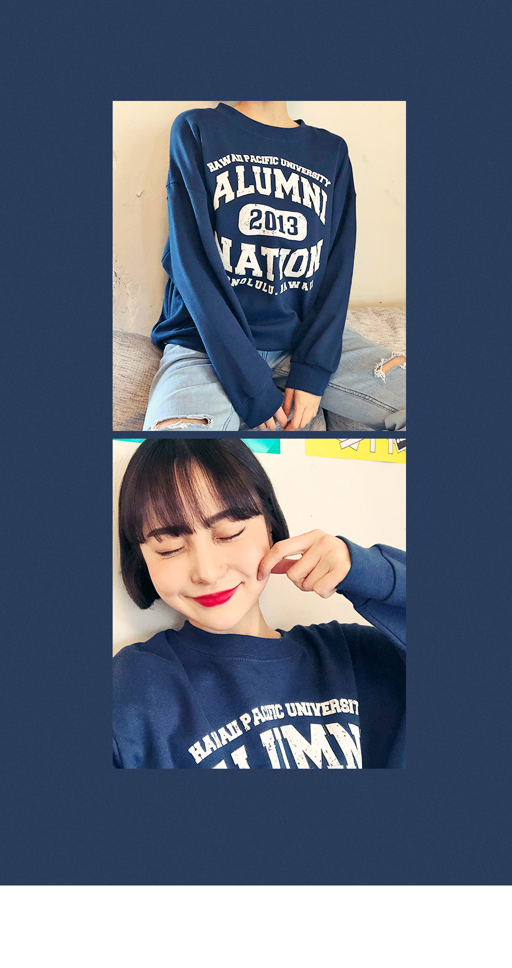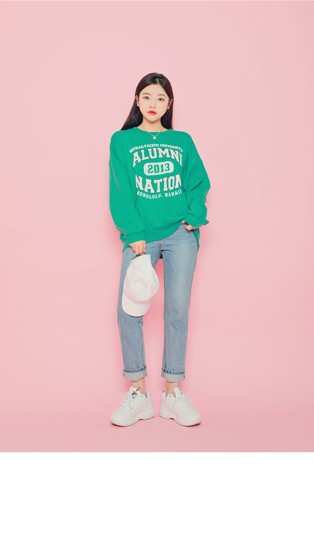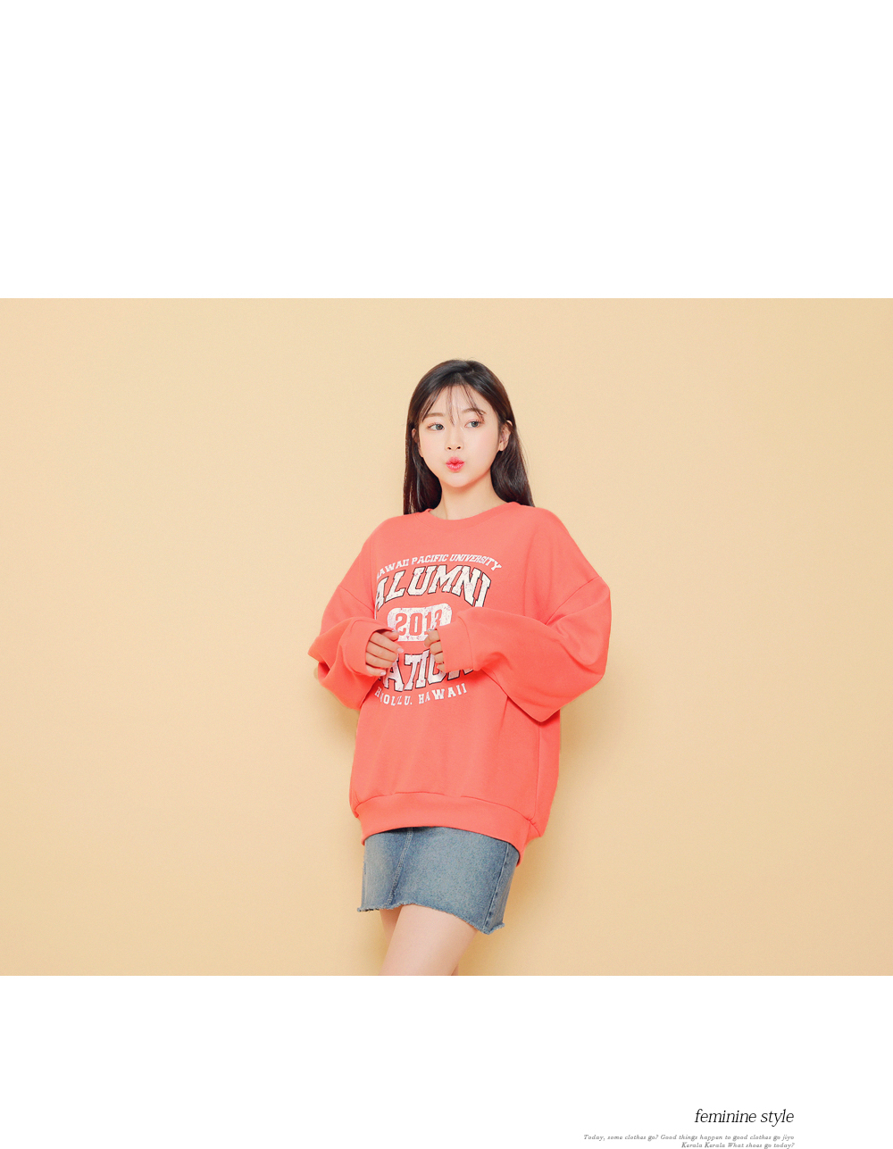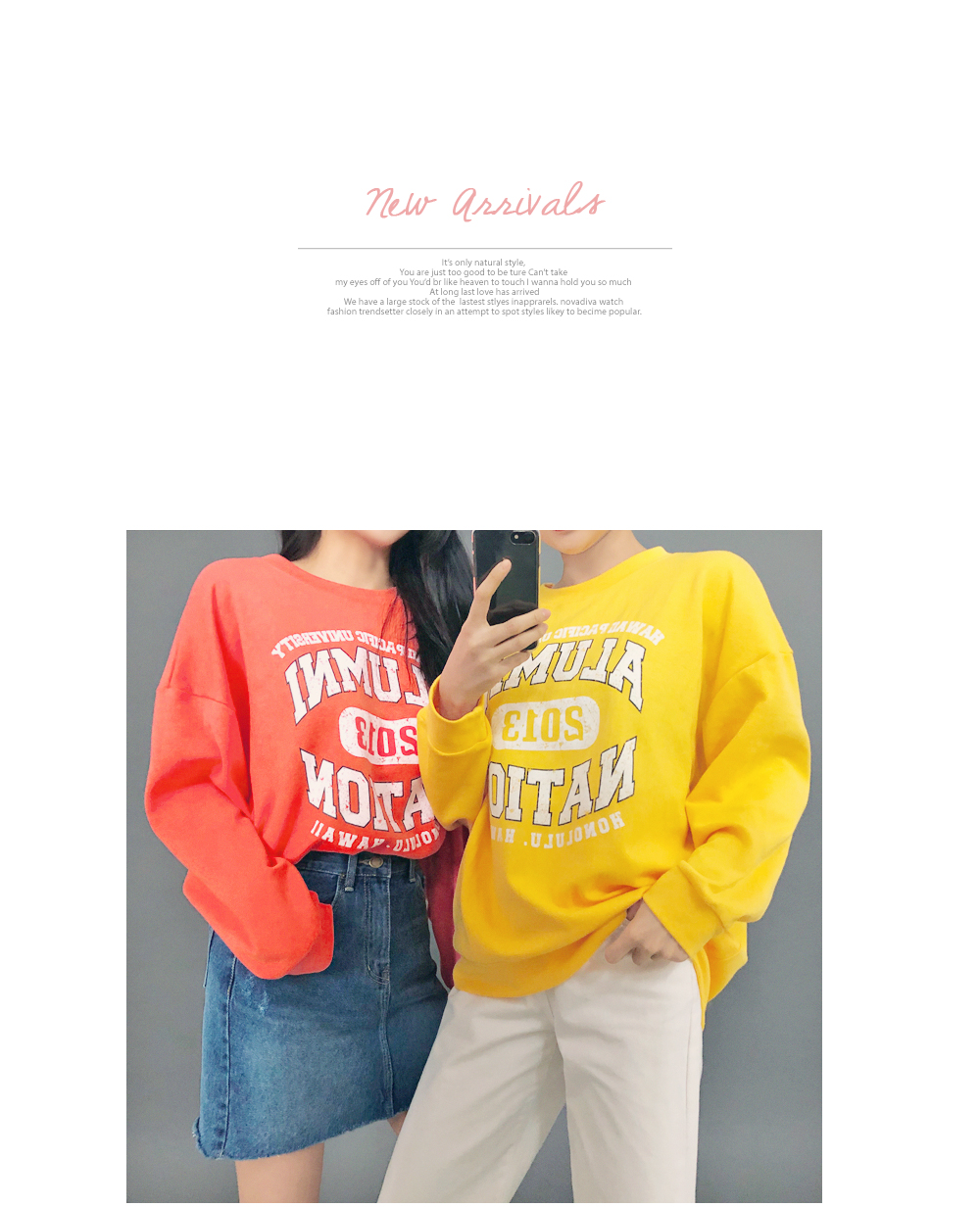 HOTPINGオリジナルの多彩なカラー展開とカジュアルなレタリングデザインでベーシックでクラシカルなプルオーバーです。シンプルなラウンドネックラインでキレイなフェイスラインを演出し、フロントラインのレタリングデザインでユニークな魅力を放ちます。ドロップショルダーとゆとりあるサイズ感のロングスリーブで体型カバーはもちろんラブリーな雰囲気を演出します。活用率の高いベーシックなカラー展開でフェイストーンアップ効果も期待いただけるアイテムです。