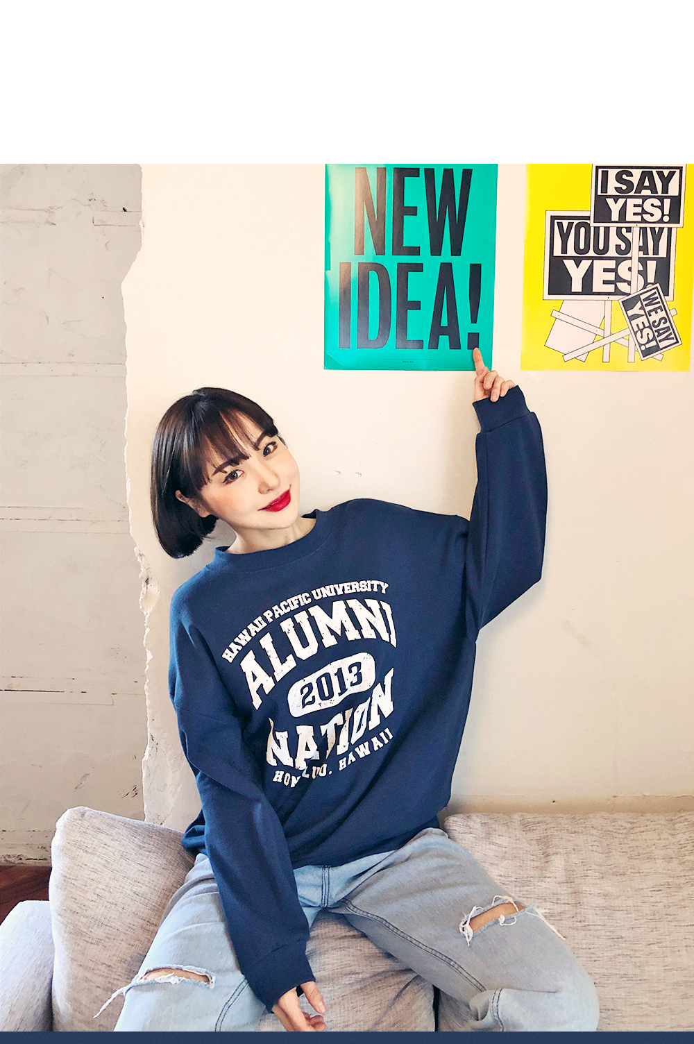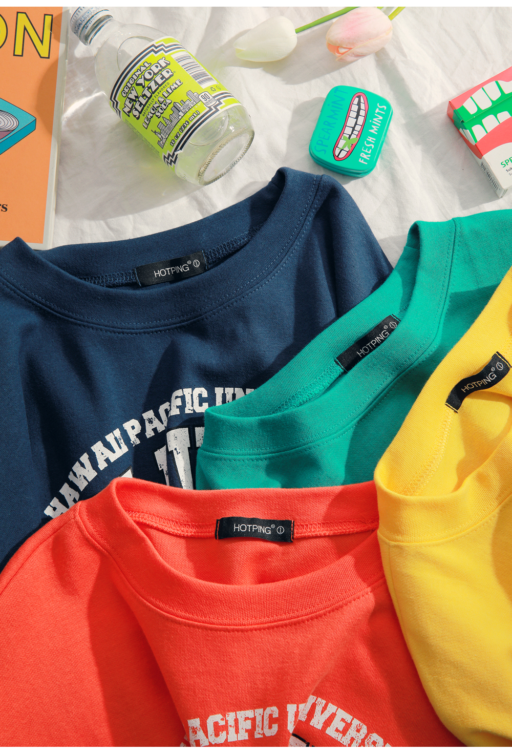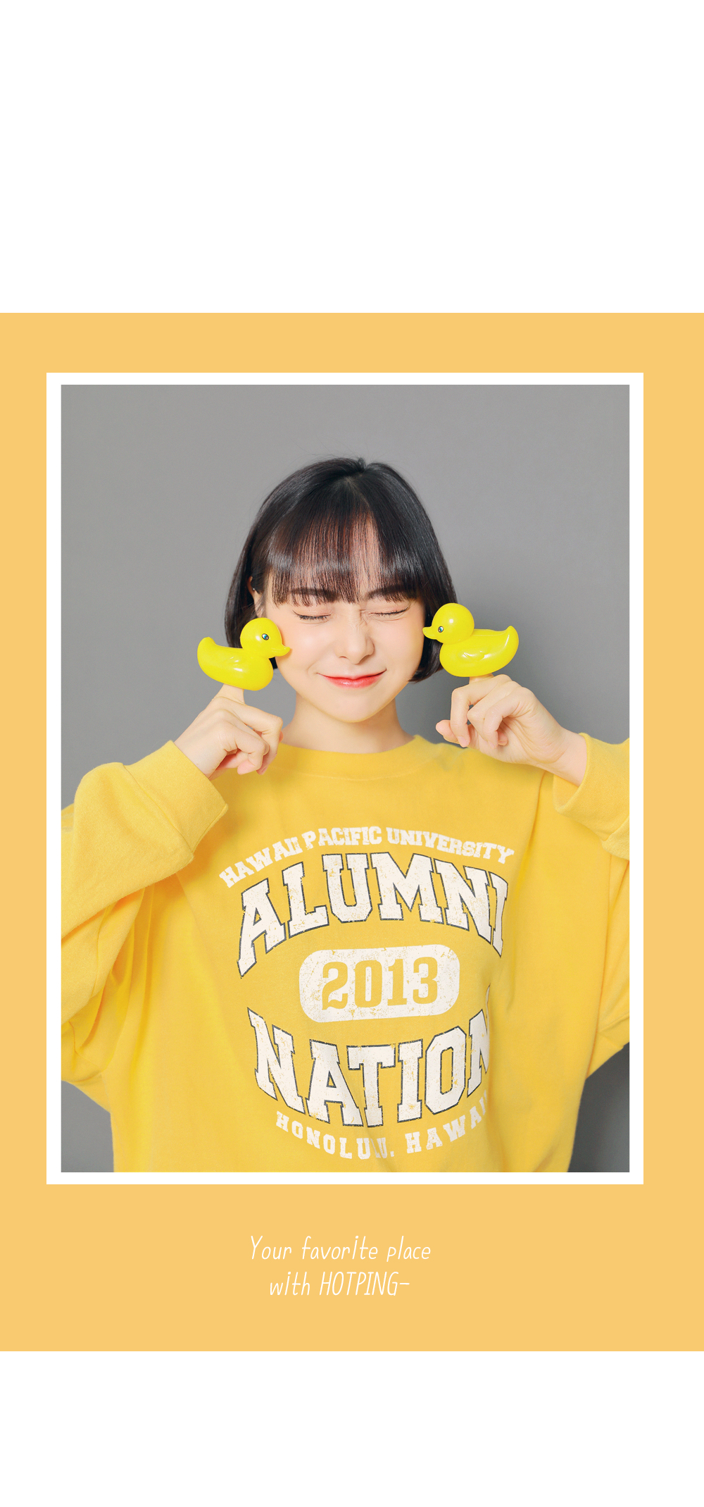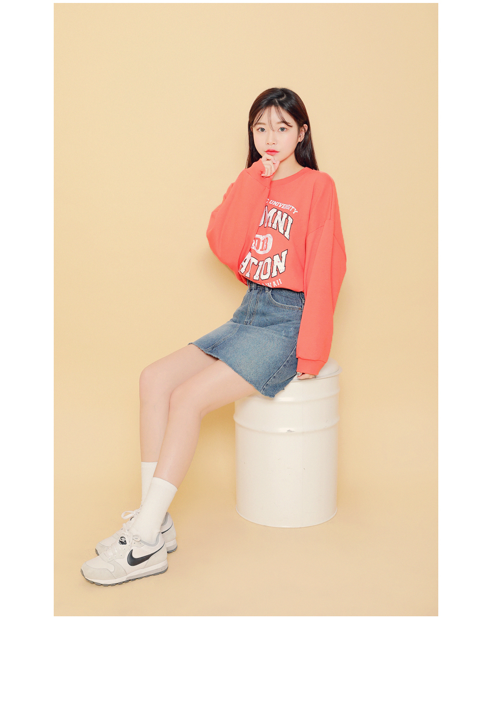 HOTPINGオリジナルの多彩なカラー展開とカジュアルなレタリングデザインでベーシックでクラシカルなプルオーバーです。シンプルなラウンドネックラインでキレイなフェイスラインを演出し、フロントラインのレタリングデザインでユニークな魅力を放ちます。ドロップショルダーとゆとりあるサイズ感のロングスリーブで体型カバーはもちろんラブリーな雰囲気を演出します。活用率の高いベーシックなカラー展開でフェイストーンアップ効果も期待いただけるアイテムです。