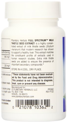ReleaseDate : 2013-08-17 Studio : Planetary Herbals Publisher : Planetary Herbals Binding : Health and Beauty Product Description Planetary herbals full spectrum silymarin 80 is a highly concentrated extract of milk thistle seeds (silybum marianum) that modern research has shown to support many aspects of a healthy liver. This extract delivers a total of 168 mg of silymarin, which is a mixture of flavanolignans including silybin, silydianin and silychristin, and matches the constituent profile of extracts used in human research studies. 0