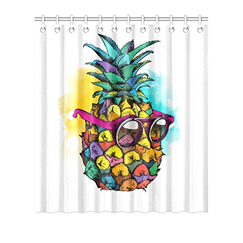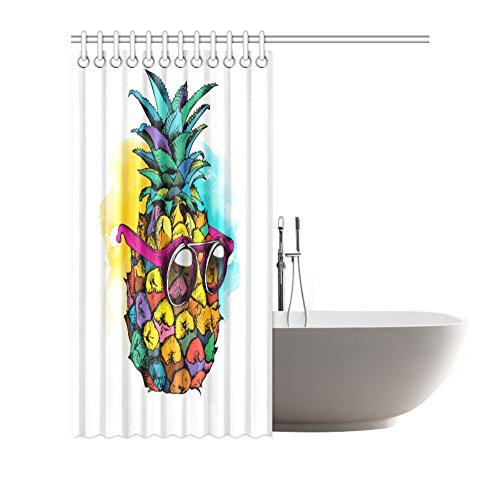 Cool Pineapple With Sunglasses Cartoon Shower Curtain Waterproof Polyester Peva Curtain For Bathroom Stylish Bathroom Decor 72"×72"