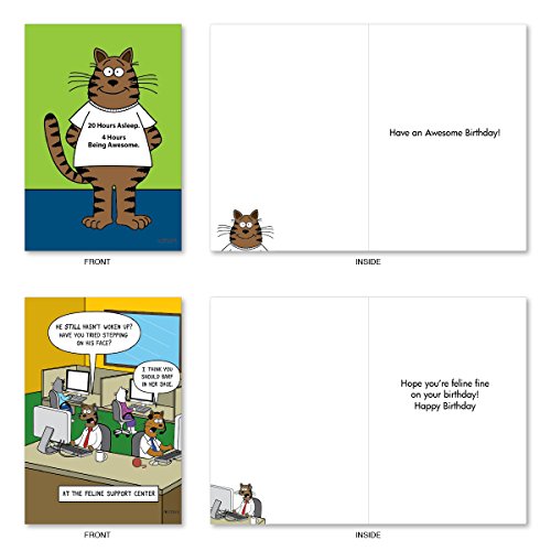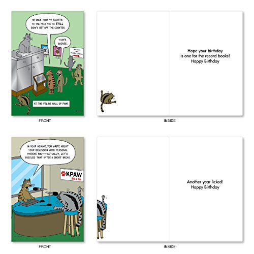 A2696BDG SCOTT METZGER'S CAT TOONS: Assorted Box Of 10 Hilarious Birthday Cards, W/12 Envelopes (10 Designs, 1 Card Per Design)