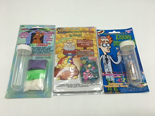 -. Feature : Why is science important in young kids' lives? Science teaches kids about the world around them. Develops patience and perseverance in kids. It can teach children to form their own opinions, rather than taking those of others for granted. / Puppy Color Snow Maker- including 15 grams instant snow (Purple, Green and White) will make 6 cups of fluffy colorful snow and test tube w/ cap. / Prospector Pete - magic stone, transformation from stone to gems before your eyes. / Zanny Marbles Multi Color (about 300 balls) - are wet and wacky, soft and squishy, fun and funky, bouncy and beautiful. They start off hard and tiny. Add water and watch them grow to more than 400 times their volume. / SAFE NON-TOXIC,BIO-DEGRADABLE .REUSABLE