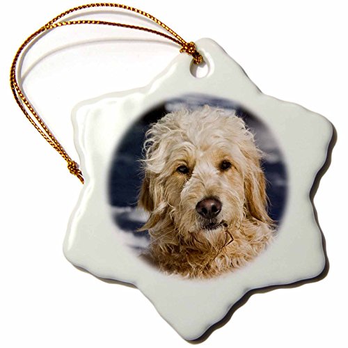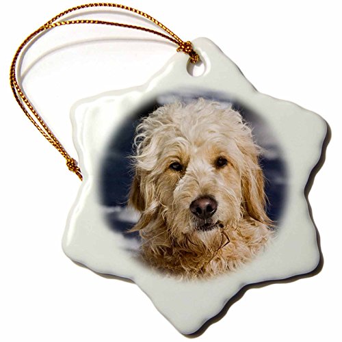 3dRose orn_145323_1 Portrait of a Goldendoodle Dog in The Snow-Us32 Zmu0073-Zandria Muench Beraldo-Snowflake Ornament, 3-Inch, Porcelain