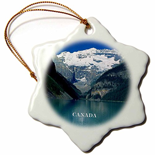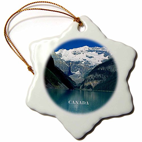3dRose orn_80579_1 Canada's Beautiful Lake Louise Snowflake Porcelain Ornament, 3-Inch