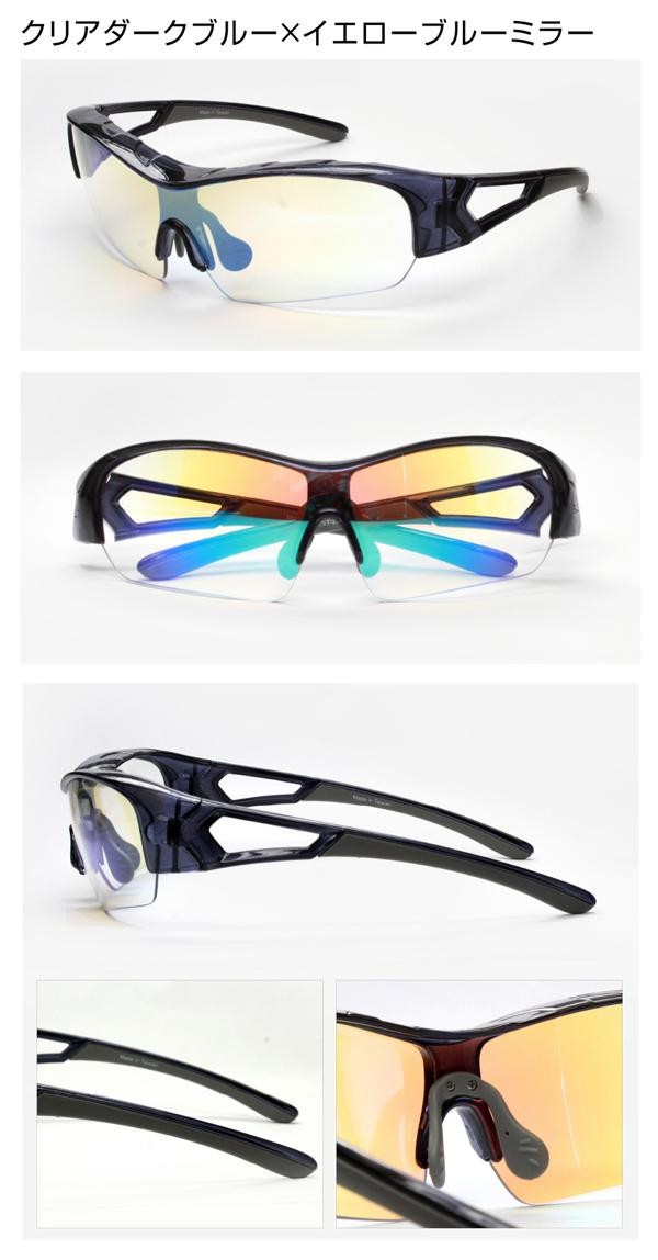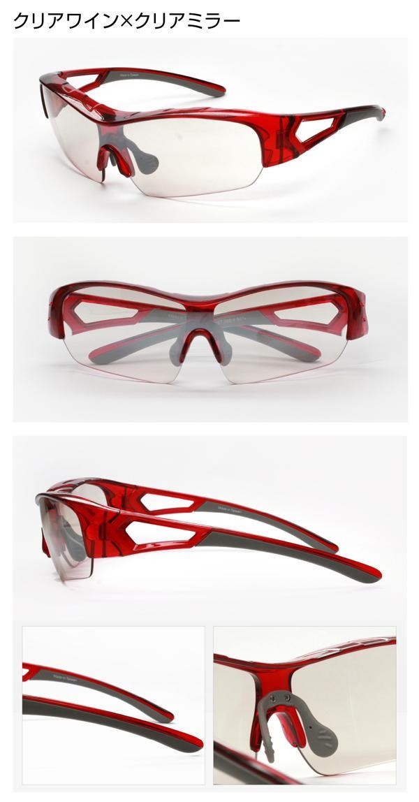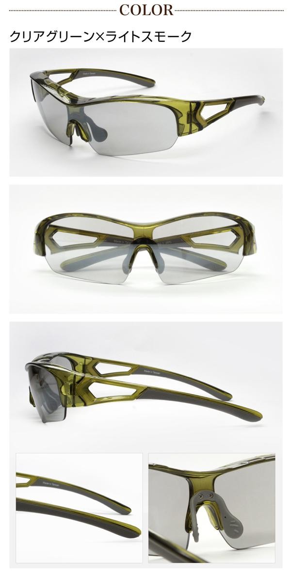 | 仕様 | UVカット率:99%以上 【可視光線透過率】 クリアグリーン:40% クリアダークブルー:50% クリアワイン:60% 【レンズカラー】 クリアグリーン:ライトスモーク クリアブルー:イエローブルーミラー クリアワイン:クリアミラー |